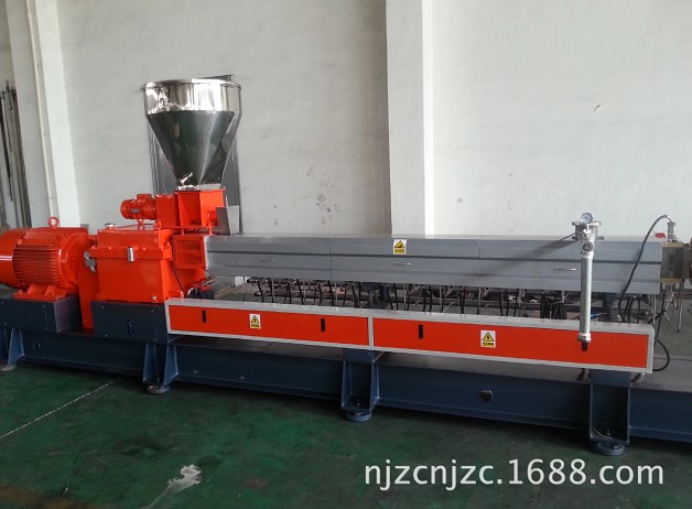 ZC系列雙螺桿擠出機由驅(qū)動部分與加工部分組成。驅(qū)動部分包括傳動箱與電機。根據(jù)機型特點,交流電機及直流電機可供選擇。傳動箱采用平行三軸式結(jié)構(gòu),具有液位計低油位報警、過濾阻塞超壓報警的功能。加工部分由兩根同向旋轉(zhuǎn)的螺桿芯軸、螺桿元件、筒體組成。筒體有閉合筒體、喂料筒體、排氣筒體。螺桿長徑比可根據(jù)加工工藝調(diào)整,螺桿元件隨加工物料性能組合可實現(xiàn)物料輸送、混合、塑化、剪切和脫揮。粒料、粉料、液體料可分別通過主料斗、側(cè)喂料斗或液體計量裝置加入,也可采用失重式多路喂料計量系統(tǒng)。